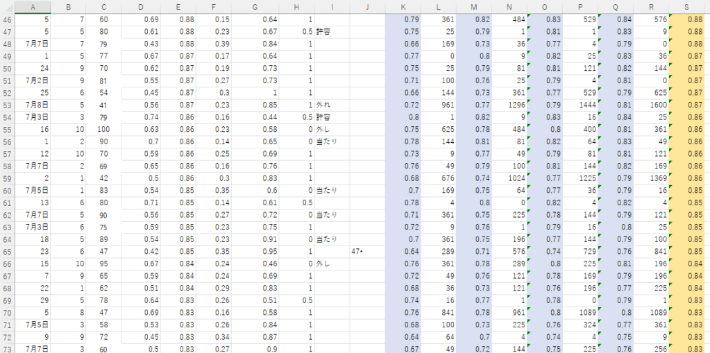 晴れ空INDEXとアメダスの実績のデータがひと月分以上集まったので地点別に修正ロジックを作り直しました。その結果、福岡はGPVが比較的当たっていて修正しないほうが良いことが分かりました。一方、仙台、富山、名古屋、高松は毎回修正するほうが良さそうです。