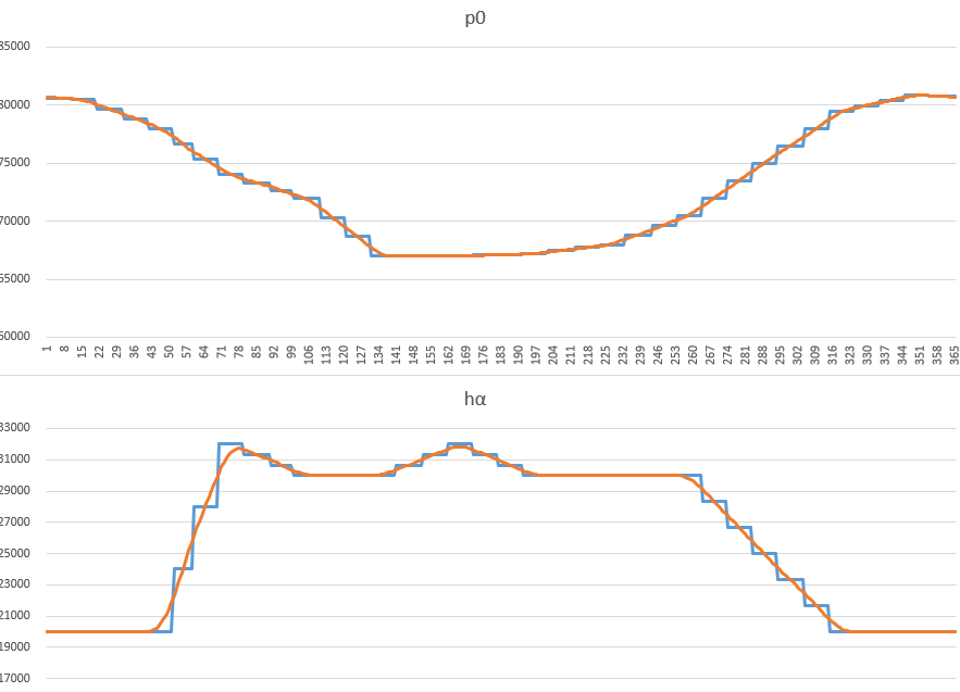 理論快晴日射の計算には、Nagataモデル(1975)を使っています。このモデルから快晴日射量を計算するために必要な大気透過率を更新しました。快晴の日の観測データに基づいて透過率を計算するパラメータを更新しますが、雨の多い季節は対象日が見つからないこともあります。振り返ってみると2023年は晴れの日が多かったように思います。このパラメータを地点別に用意できれば良いのですが、現在は代表地点の透過率を使っています。