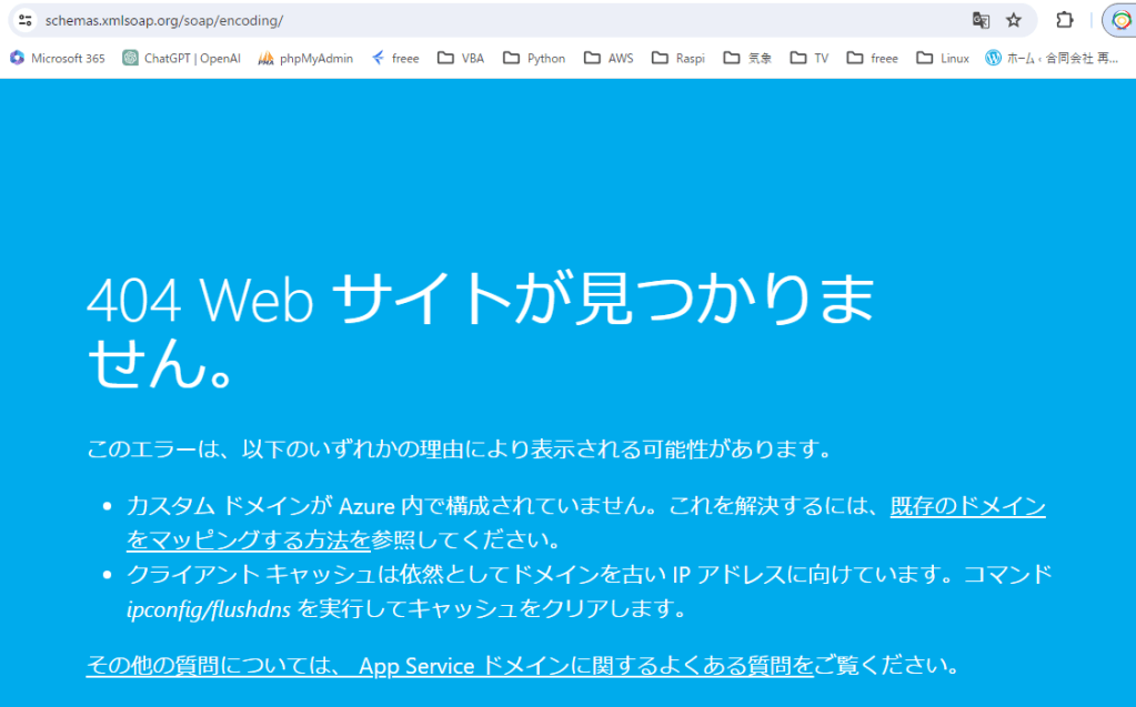 4/30頃からこのサイトhttps://schemas.xmlsoap.org/が404エラーとなることがありました。このURLはSOAP通信を定義したwsdlの中に記載されています。この影響でSOAPのAPIを利用した多くのウェブサービスが停止したと思われます。当社のサービスも影響を受けました。今後、このようなことが起きないように、このサイトに定義されたスキーマをローカルの環境に置いて参照するようにプログラムを修正しました。SOAPは古いAPIで、RESTに比べると複雑で利用するための実装にも時間がかかります。