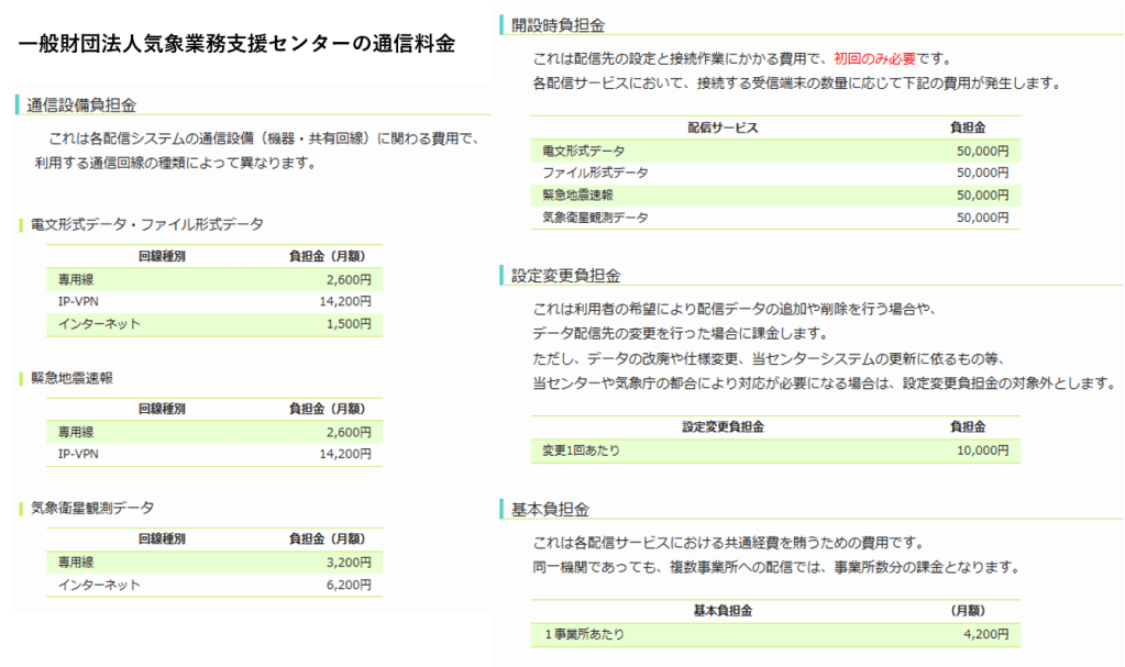 参考のために以下に気象業務支援センターの通信費を掲載します。IP-VPNでは月額14200円で、基本負担金4200円を合わせても月額18400円です。JEPXの通信費月額25万円というのは異常です。専用線開設の初期費用は気象業務支援センターの開設時負担金の10倍の50万円です。