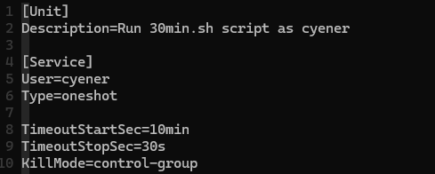 昨年末にsystemdタイマーが突然発火しなくなるという事象がありました。タイマーに強制終了の設定をしていなかったことが原因の1つです。何らかの理由で実行中のスクリプトから終了のシグナルがタイマーに届かないときに強制終了の設定がないとタイマーのActiveな状態が維持されて、次回のタイマーが発火しないのです。このためserviceユニットファイルの[Service]セクションにType=oneshotを指定したときは、併せてTimeoutStartSec=タイムアウト時間とKillMode=control-groupを設定することが望ましいそうです。
